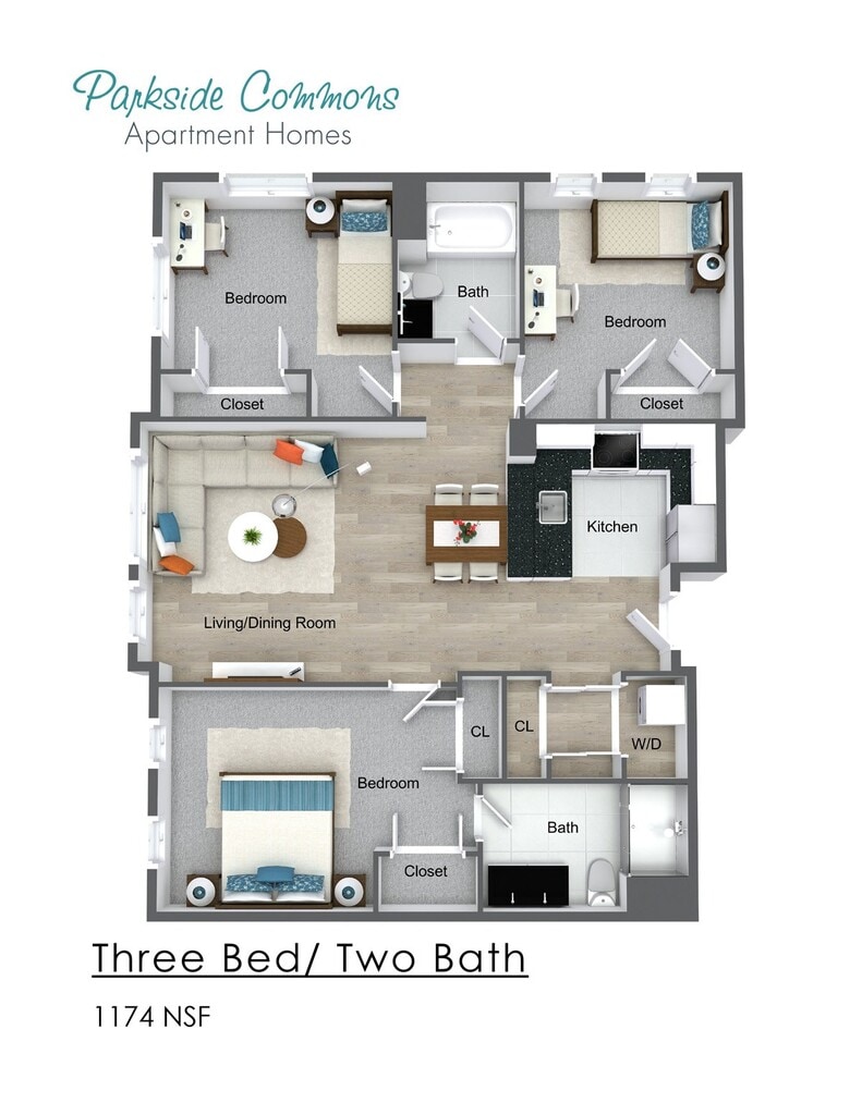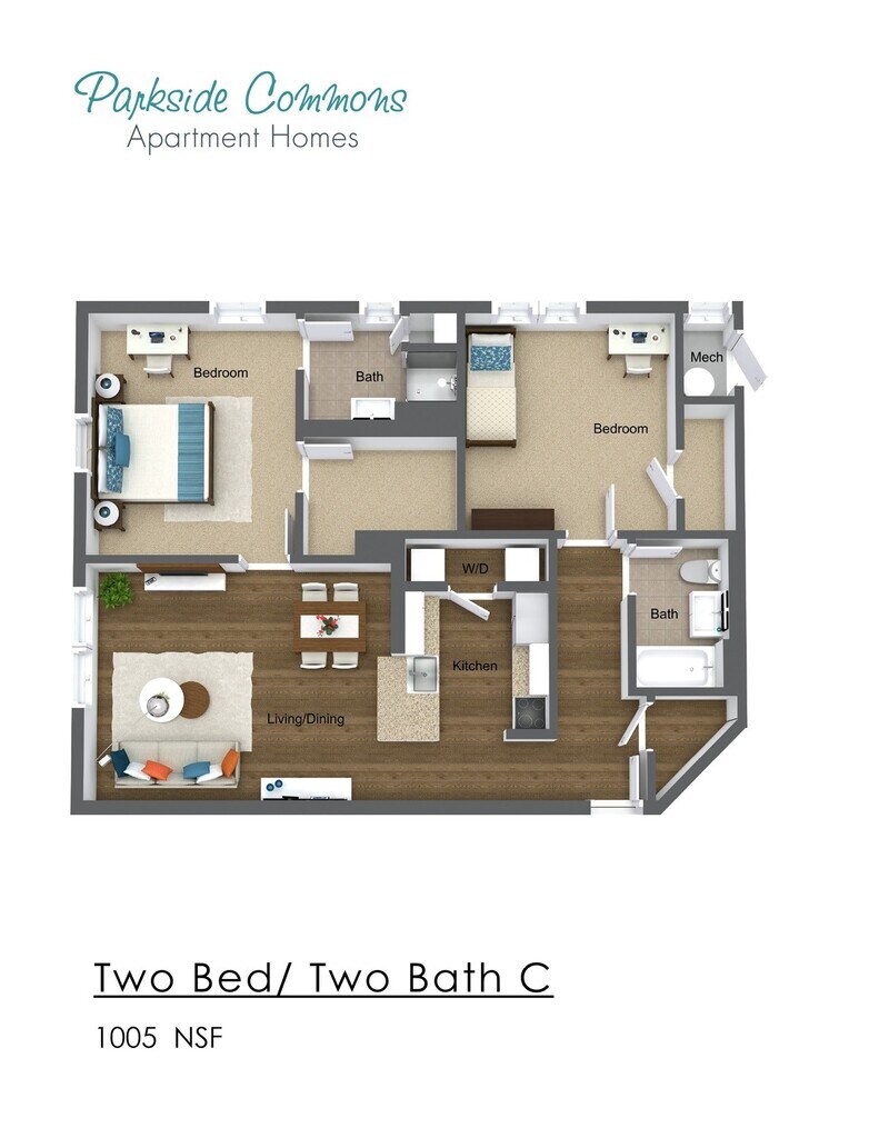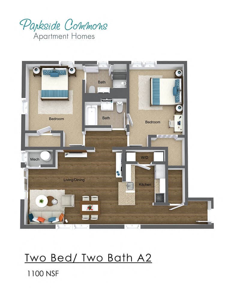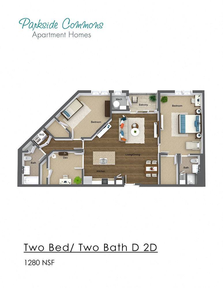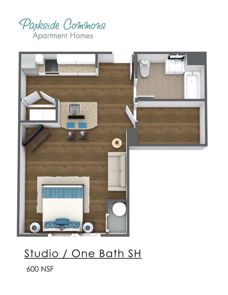Parkside Commons Apartments offers Studio to 3 Bedroom apartments starting from $2,309 and having 520–1,410 sq ft. Here is the current pricing and availability: