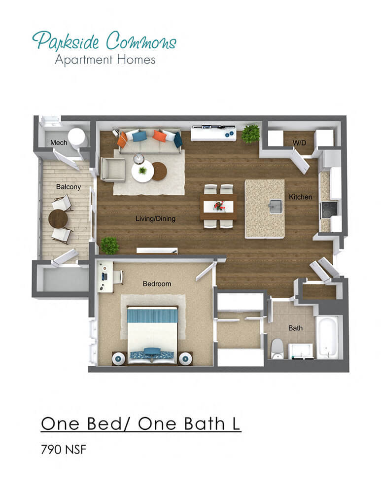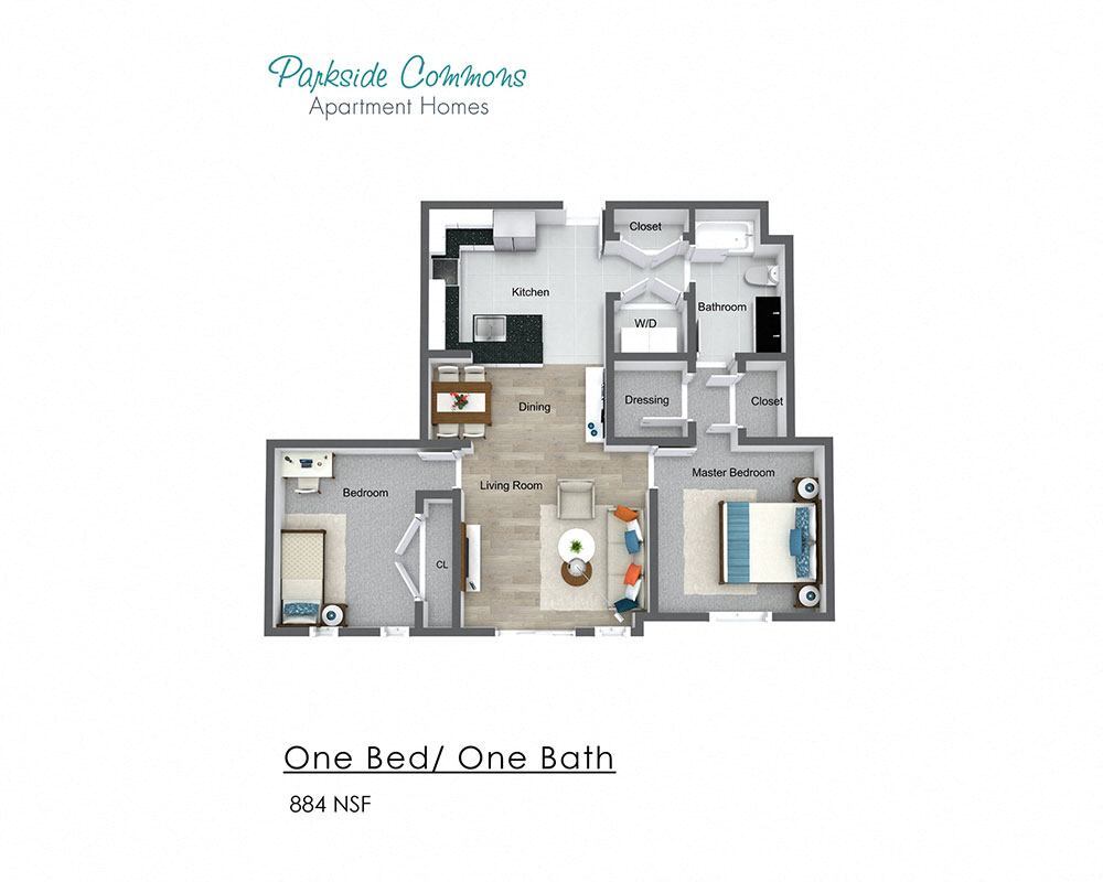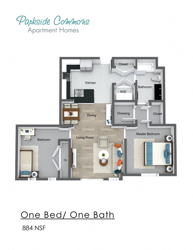 1 Bed, 1 Bath, 710-870 sq ftTotal Monthly PriceAvailable NowModel Gallery