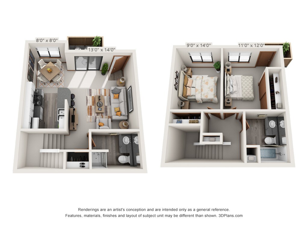 2 Beds, 2 Baths, 885 sq ftAvailable NowModel Gallery