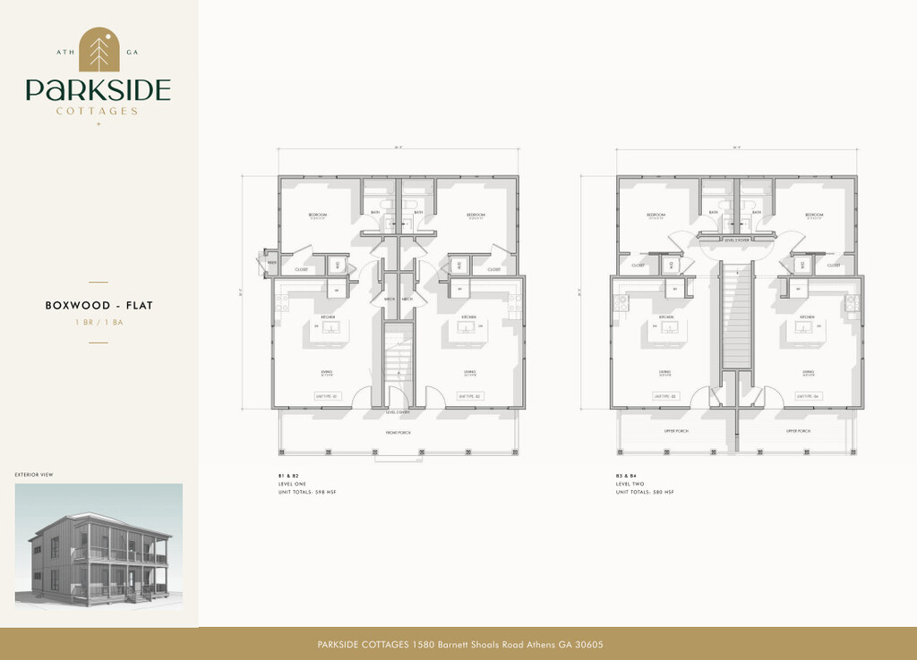 Coming August 2025, Parkside Cottages offers residents the very best in upscale finishes and features. Each new home comes thoughtfully designed with you in mind. The neighborhood is conveniently situated at the intersection of Barnett Shoals & Research Drive. Residents are just a short walk to local Eastside shopping and dining and a short drive to University of Georgia main campus, Veterinary School, and Downtown Athens. The community prioritizes both space and tranquility, with generous floor plans and ample green space ideal for relaxation or recreation. Effortlessly combining convenience and charm, this idyllic location is merely moments away from the University of Georgia and the lively heart of downtown Athens, making it a prime choice for those seeking both accessibility and quality of life. Contact us to learn more information and reserve your one-bedroom / two-bedroom space!