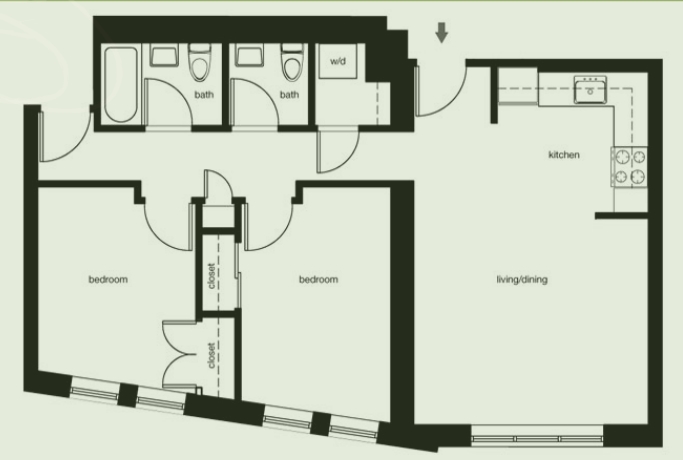 Apartment Model: 2-6B2 Bedroom, 1.5 Bath, 879 sq ftUnavailable![]()