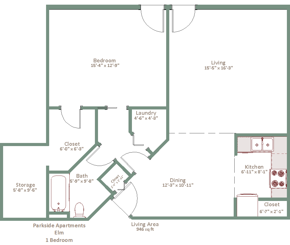 Apartment Model: Elm$1,3361 Bedroom, 1 Bath, 946 sq ftUnavailable![]()