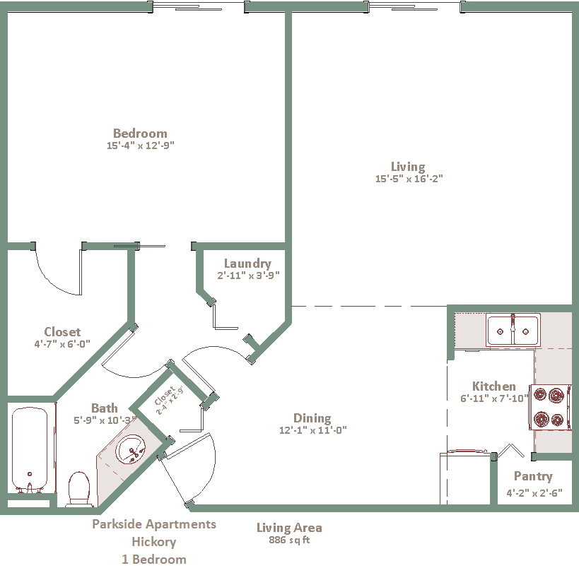 Apartment Model: Hickory$1,3081 Bedroom, 1 Bath, 886 sq ftAvailable February 6, 2026![]()