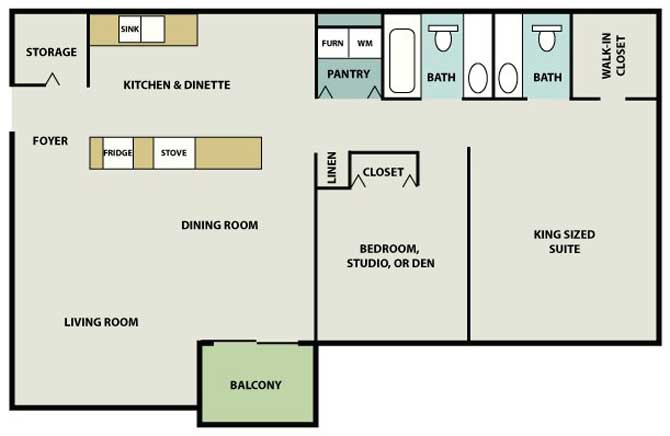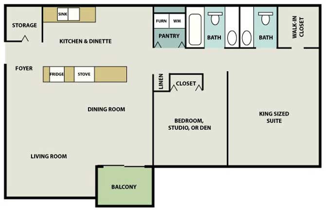 One Bed One Bath 18th Street - Floorplan 11 2 Bedrooms