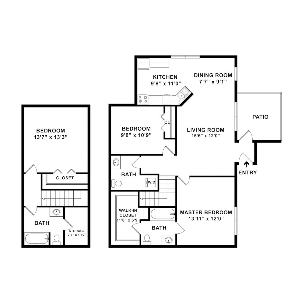 The Plank - Floorplan 4 Apartment Unit: 0628Apartment Model: The Plank$1,2341 Bedroom, 1 Bath, 785 sq ftAvailable December 25, 20252 Bedrooms