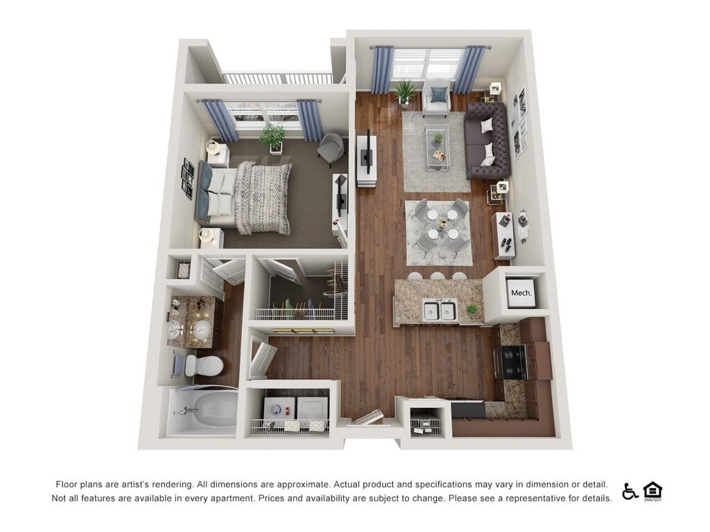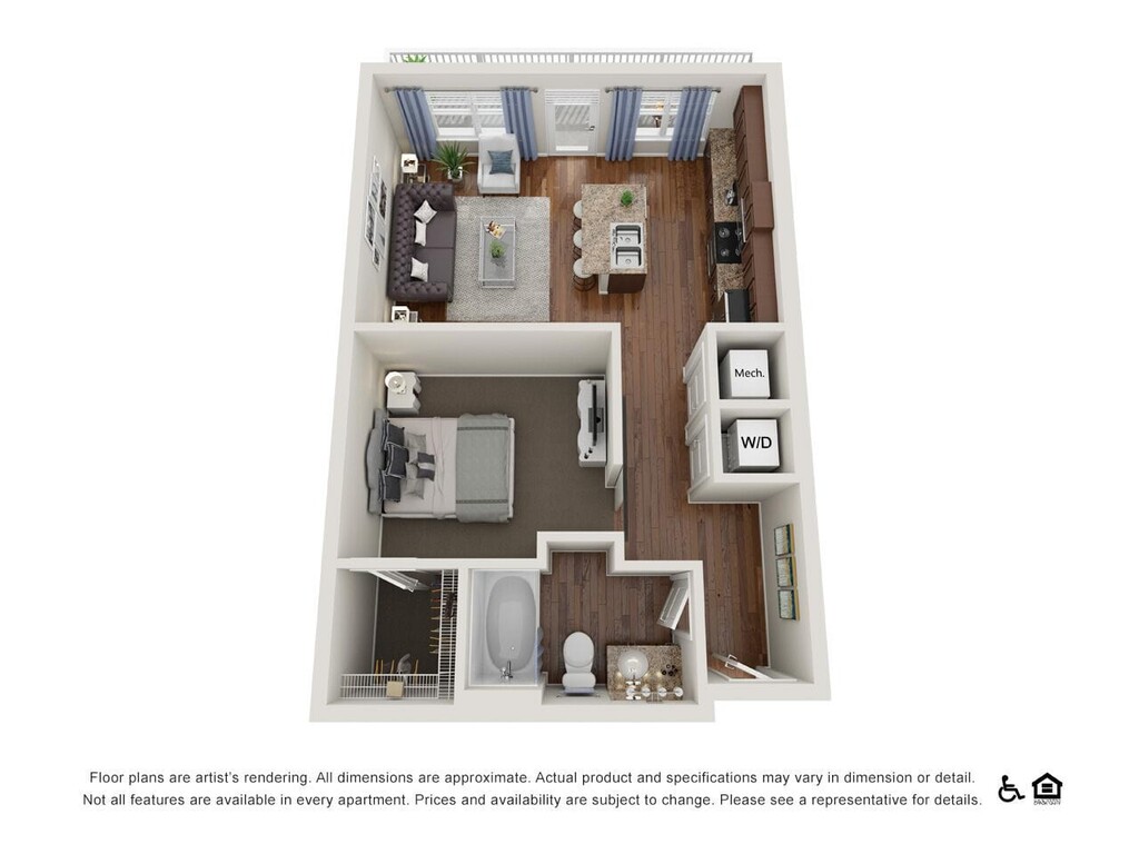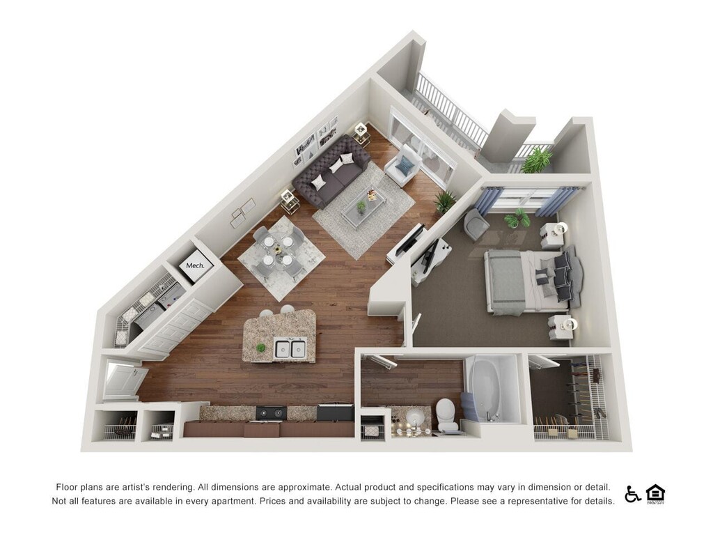 1 Bed, 1 Bath, 804 sq ftModel Gallery