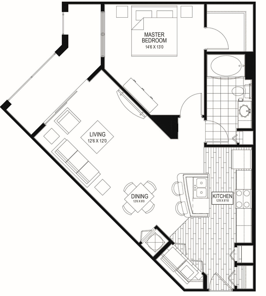 1 Bed, 1 Bath, 814 sq ftModel Gallery