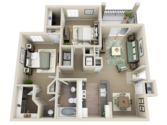 2 Beds, 2 Baths, 1091 sq ftAvailable NowModel Gallery