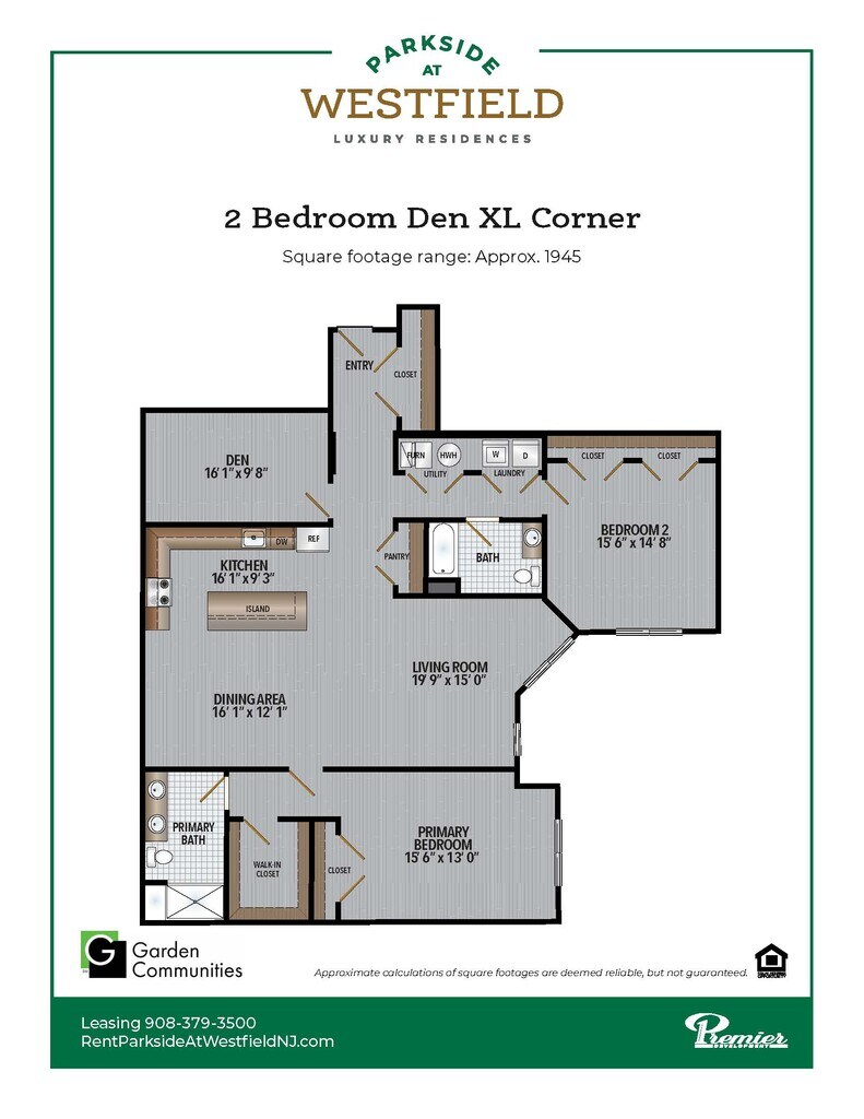 Apartment Model: $2.57/sq.ft. - Two Bedroom Den XL Corner$4,9952 Bedroom, 2 Bath, 1944 sq ftAvailable Now![]()