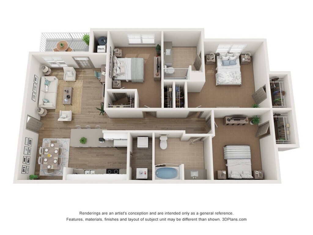 3 Beds, 2 Baths, 1356 sq ftModel Gallery