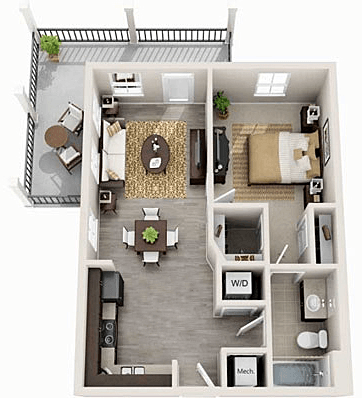 1 Bed, 1 Bath, 843 sq ftAvailable January 7, 2026Largest 1 BedroomThis is the largest 1 Bedroom at this PropertyModel Gallery