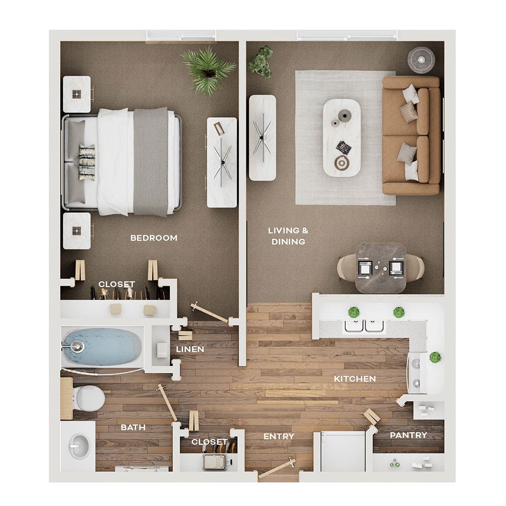 1 Bed, 1 Bath, 625 sq ftAvailable NowModel Gallery