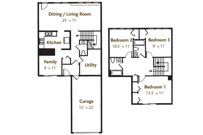Apartment Model: 2 Bed 1.5 Bath Townhouse$1,2182 Bedroom, 1.5 Bath, 1300 sq ftUnavailable2 Bed 1.5 Bath Townhouse - Floorplan 1 3 Bedrooms