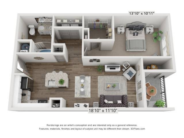 Apartment Model: A1A$1,5501 Bedroom, 1 Bath, 755 sq ftAvailable NowFloor plans are artist's rendering. All dimensions are approximate. Actual product and specifications may vary in dimension or detail. Not all features are available in every rental home. Prices and availability are subject to change. Base rent is based on monthly frequency. Additional fees may apply, such as but not limited to package delivery, trash, water, amenities, etc. Deposits vary. Please see a representative for details.