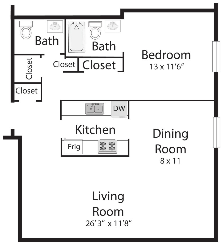 1 Bed, 1.5 Baths, 1115 sq ftLargest 1 BedroomThis is the largest 1 Bedroom at this PropertyAvailability Details