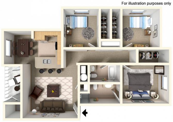 Apartment Model: 2 BED2 Bedroom, 1 Bath, 885 sq ftUnavailable2 BED - Floorplan 1 3 Bedrooms