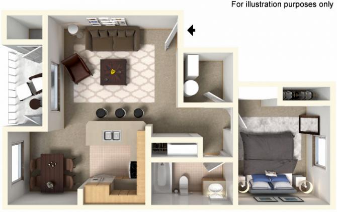 1 Bed, 1 Bath, 649 sq ftModel Gallery
