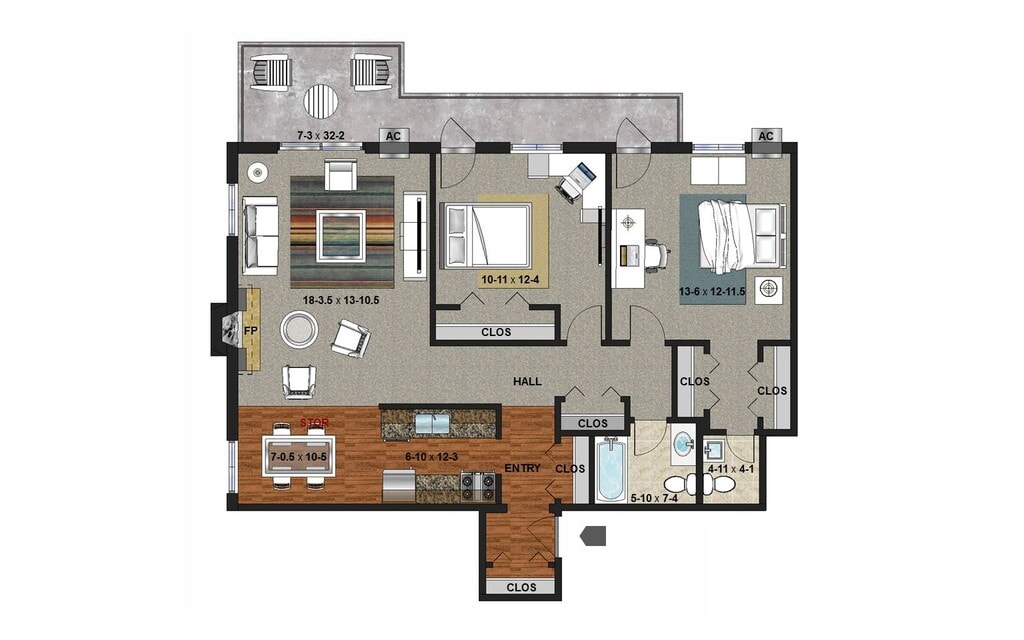 2 Bedroom - Floorplan Apartment Unit: 302Apartment Model: 2 Bedroom$1,6642 Bedroom, 1.5 Bath, 1192 sq ftAvailable May 1, 2026Apartment Unit: 413Apartment Model: 2 Bedroom$1,6642 Bedroom, 1.5 Bath, 1192 sq ftAvailable May 1, 2026
