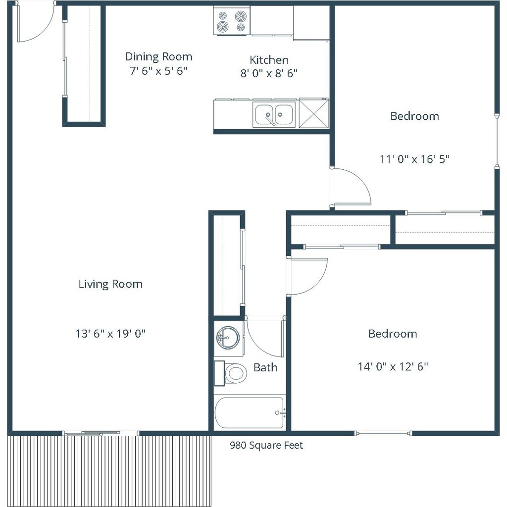 2 Beds, 1 Bath, 980 sq ftPlus FeesAvailable Dec 15Model Gallery