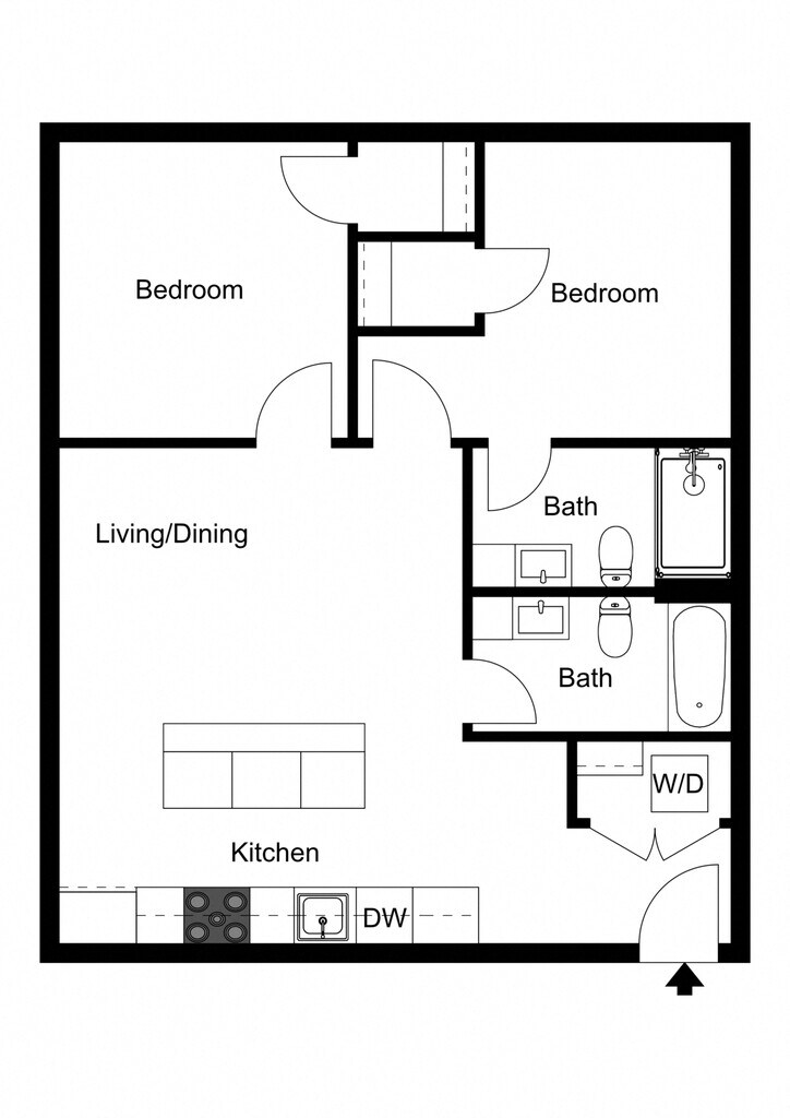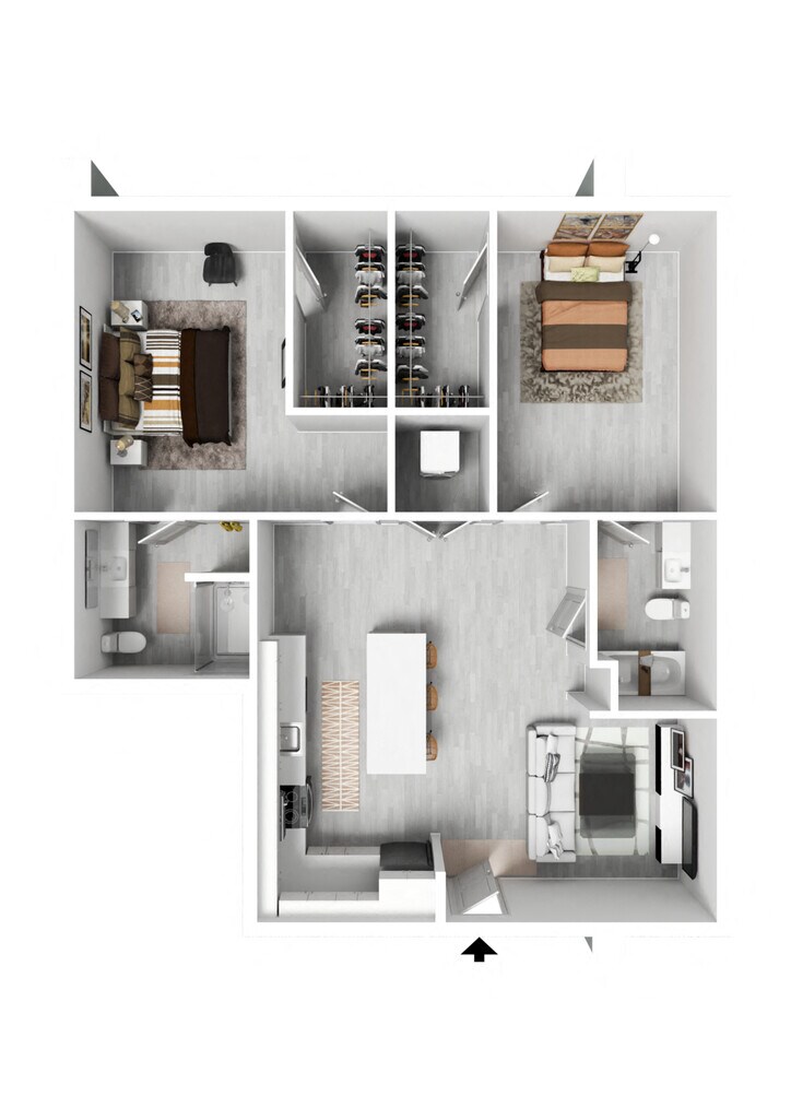 2 Beds, 2 Baths, 1042-1043 sq ftLargest 2 BedroomThis is the largest 2 Bedroom at this PropertyModel Gallery