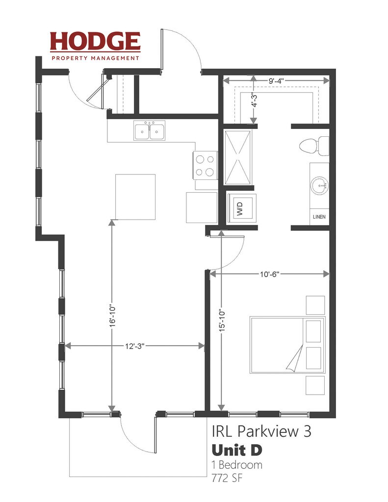 Apartment Model: Parkview 3 - D$1,7001 Bedroom, 1 Bath, 772 sq ftAvailable Now![]()