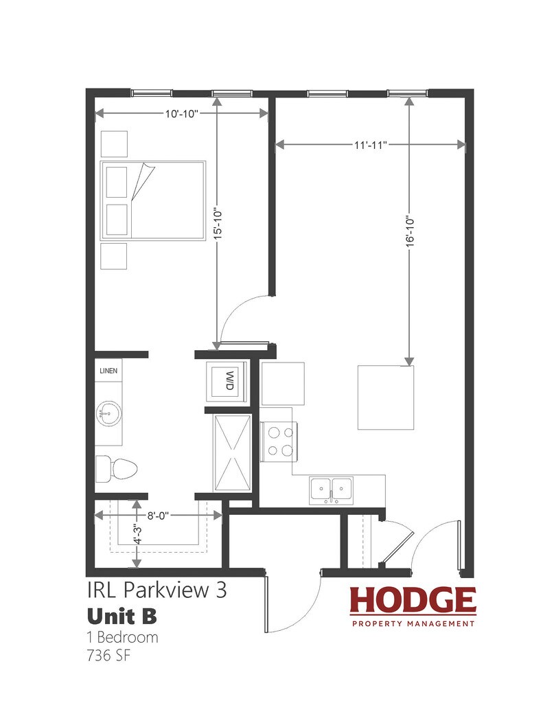Apartment Model: Parkview 3 - B$1,6401 Bedroom, 1 Bath, 736 sq ftAvailable Now![]()