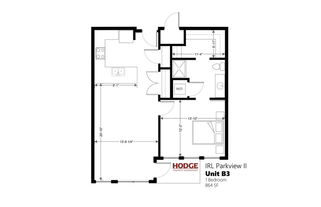 Apartment Model: Parkview 2 - B1$1,5801 Bedroom, 1 Bath, 864 sq ftAvailable Now![]()