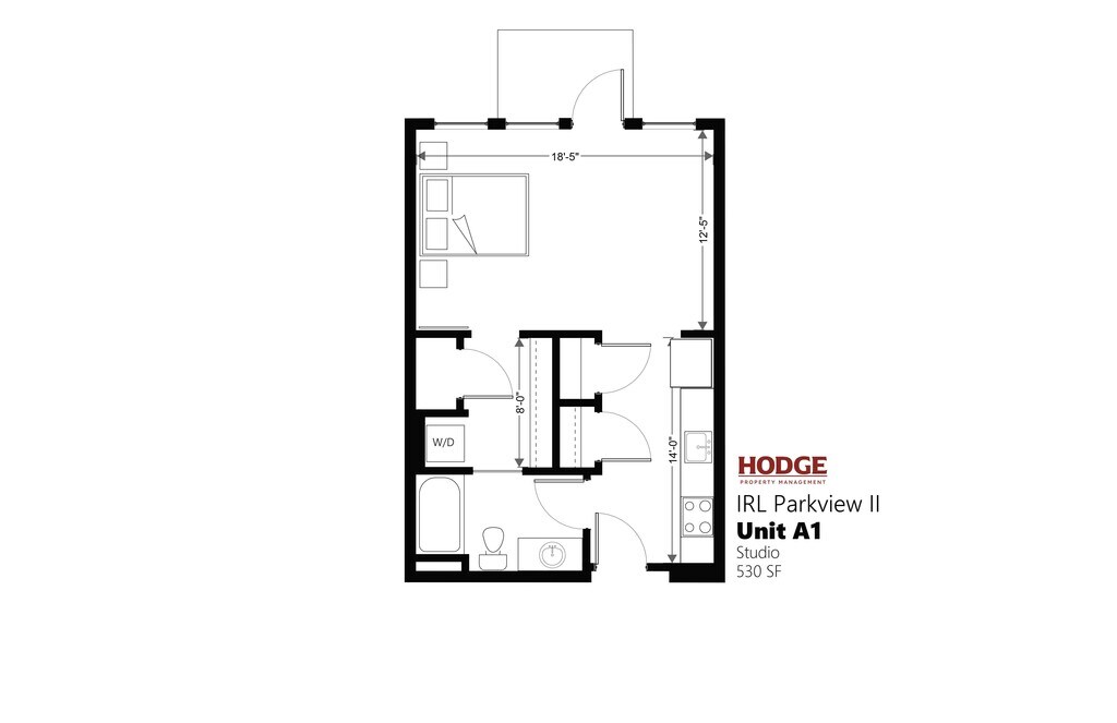 Apartment Model: Parkview 2 - A1$1,330Studio, 1 Bath, 530 sq ftAvailable Now![]()