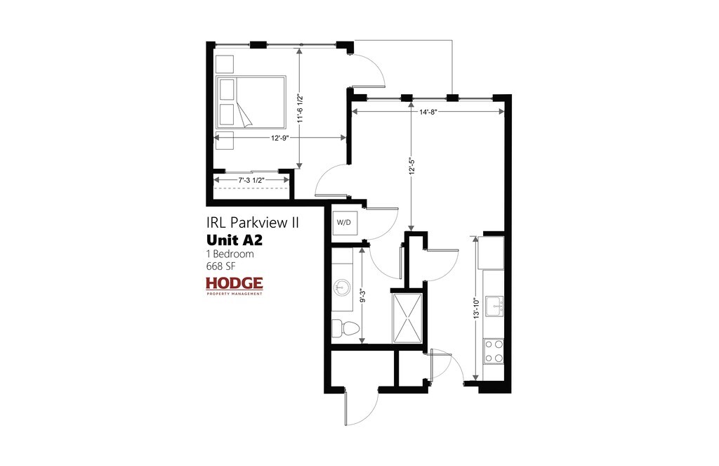 Apartment Model: Parkview 2 - A2$1,5801 Bedroom, 1 Bath, 668 sq ftAvailable Now![]()