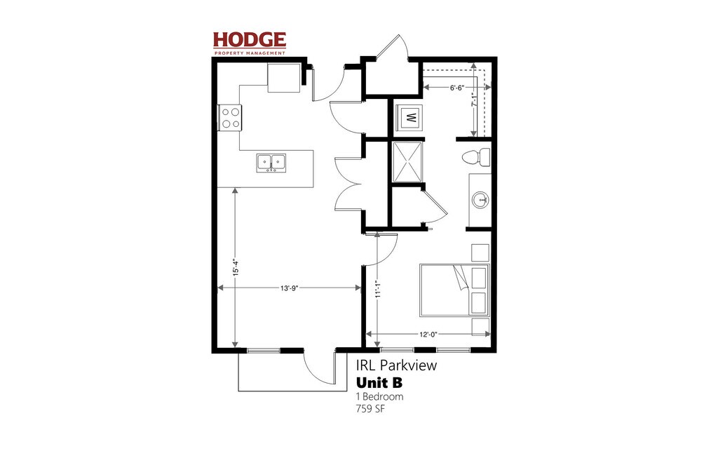 Apartment Model: Parkview 1 - B$1,5601 Bedroom, 1 Bath, 759 sq ftAvailable Now![]()