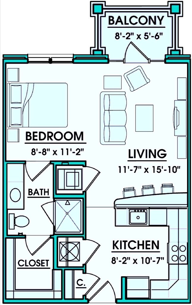Studio, 1 Bath, 576 sq ftAvailability Details