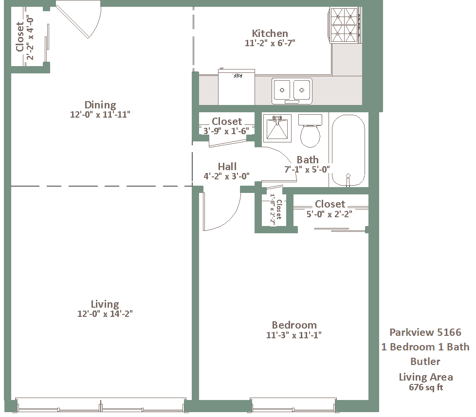 Woodview - Image 1 Apartment Unit: Bldg 5188 #E15Apartment Model: Woodview$1,1221 Bedroom, 1 Bath, 608 sq ftAvailable March 27, 2026Butler
