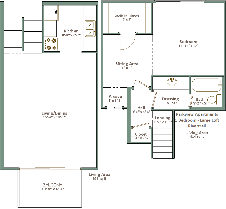 2 Beds, 1 Bath, 1012 sq ftAvailable NowLargest 2 BedroomThis is the largest 2 Bedroom at this PropertyModel Gallery