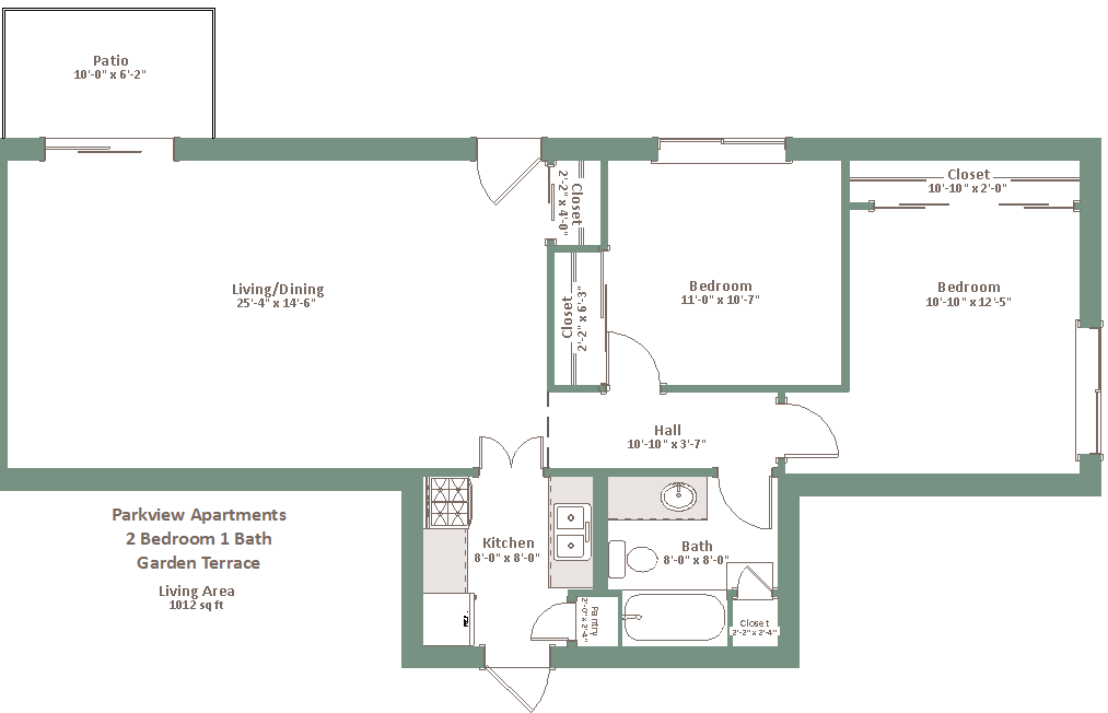 Apartment Model: Garden TerraceFrom $1,1362 Bedroom, 1 Bath, 1012 sq ftAvailable Now![]()
