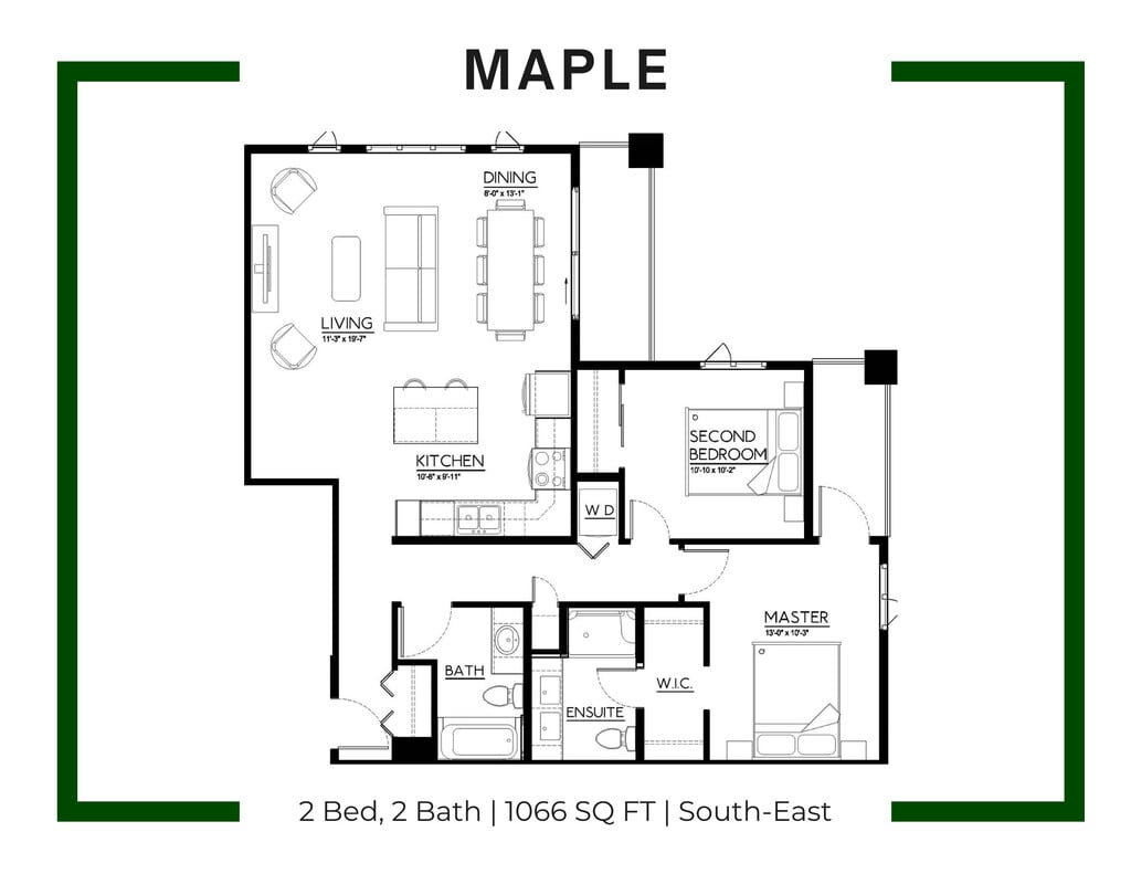 Apartment Model: Maple2 Bedroom, 2 Bath, 1066 sq ftAvailable December 1, 2025FloorplansPhotos![]()