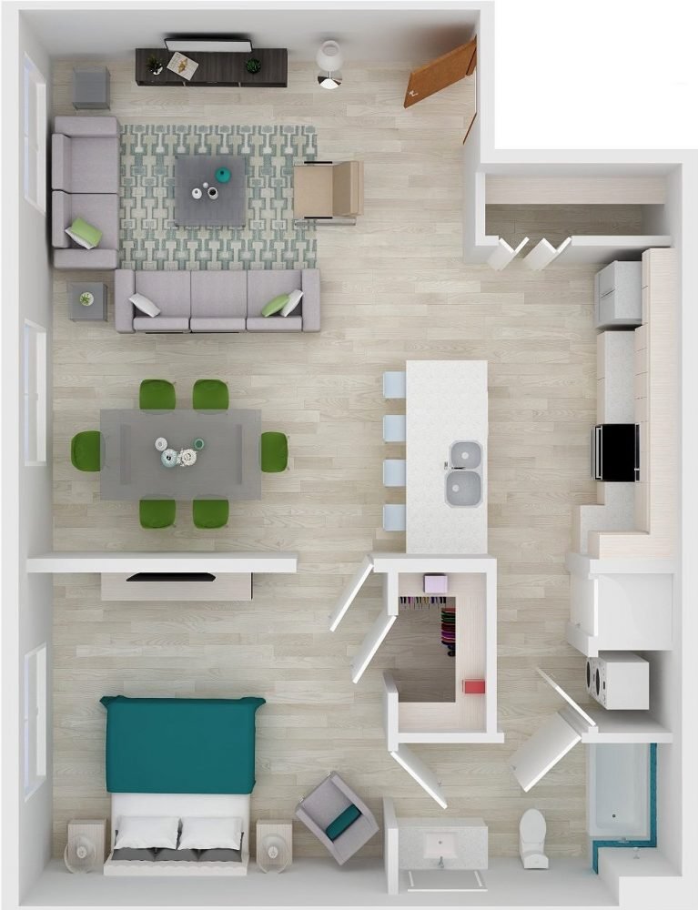 1 Bed, 1 Bath, 495 sq ftModel Gallery