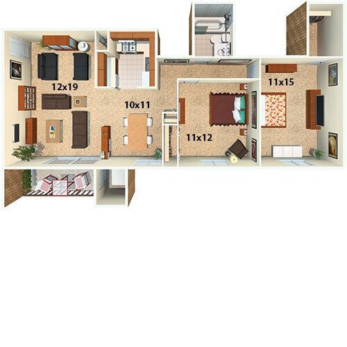 2 Beds, 1 Bath, 1050 sq ftModel Gallery