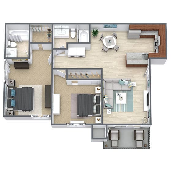 2 Beds, 2 Baths, 900 sq ftAvailable NowModel Gallery