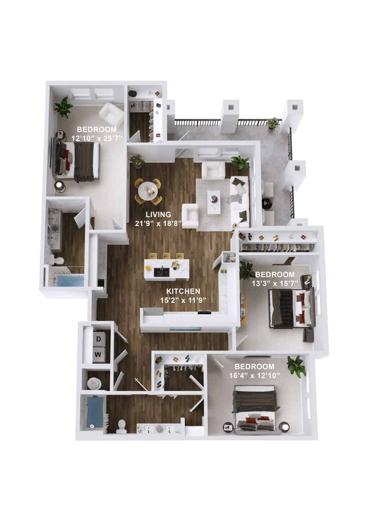 Studio to 3 Bedroom Apartments at Parkway Crossings currently range from $1,662 to $3,220