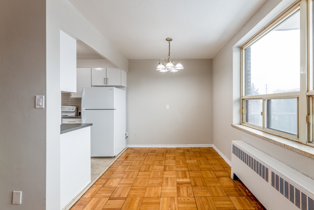 This property is in a great location. With the upcoming Eglinton LRT this neighbourhood is developing quickly. The area has a lot to offer all families. The TTC is located right outside the front steps with a short ride to Kennedy Subway Station, Kennedy GO & Eglinton GO Stations. The building is surrounded by beautiful landscaping and is in close proximity to the local Police station, numerous strip plazas, restaurants, pharmacies, theatres, daycares, including various schools: Ionview Public School, Corvette Public School, George Peck Public School, St. Maria Goretti Catholic School, St. Joan of Arc Catholic Academy. There are several parks within walking distance to the property: Eglinton Ravine Park, Maidavale Park and Treverton Park. The building is extremely clean and well-maintained. Building features controlled access, on site laundry facilities, modernized elevators, 24 hr. Emergency Maintenance, security cameras, controlled and onsite staff. The suites feature modern kitchens and appliances, refinished hardwood floors, ceramic tiled bathrooms and kitchen and plenty of closet space. The building’s residents are friendly and neighbourly, creating a community atmosphere.