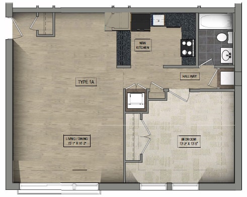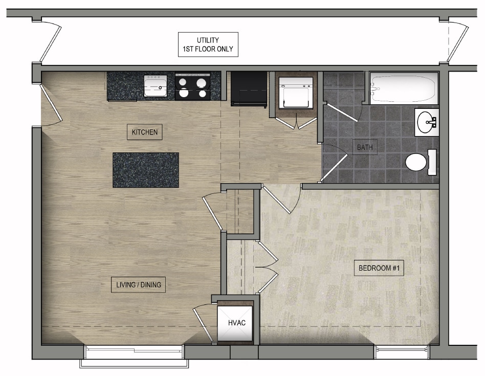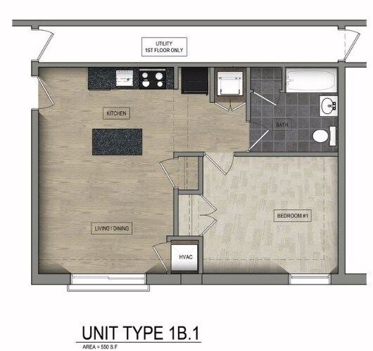1 Bed, 1 Bath, 550 sq ftModel Gallery