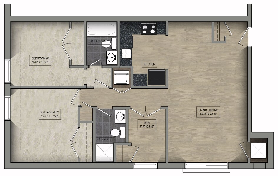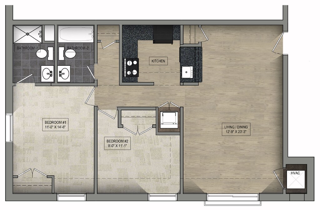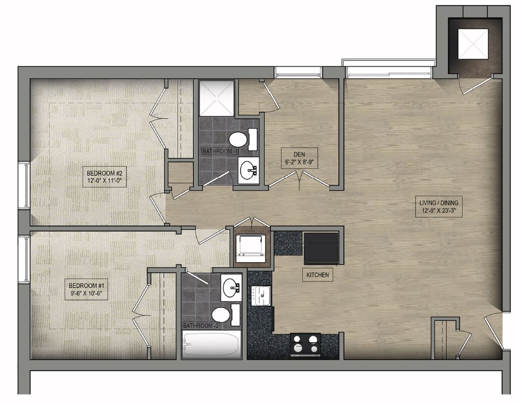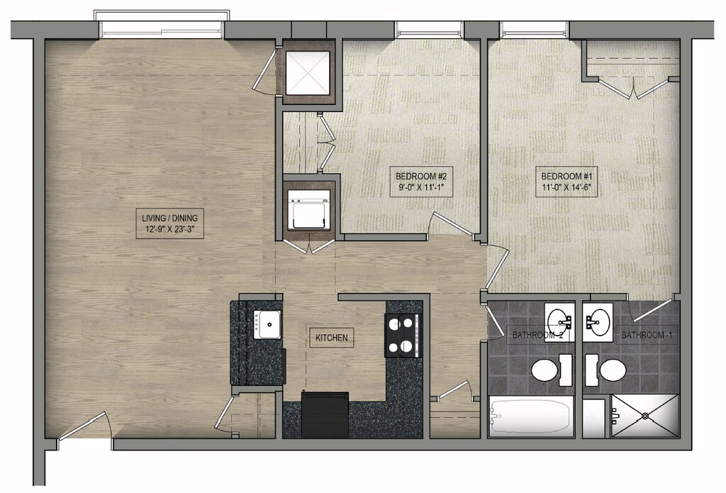 2 Beds, 2 Baths, 861 sq ftModel Gallery