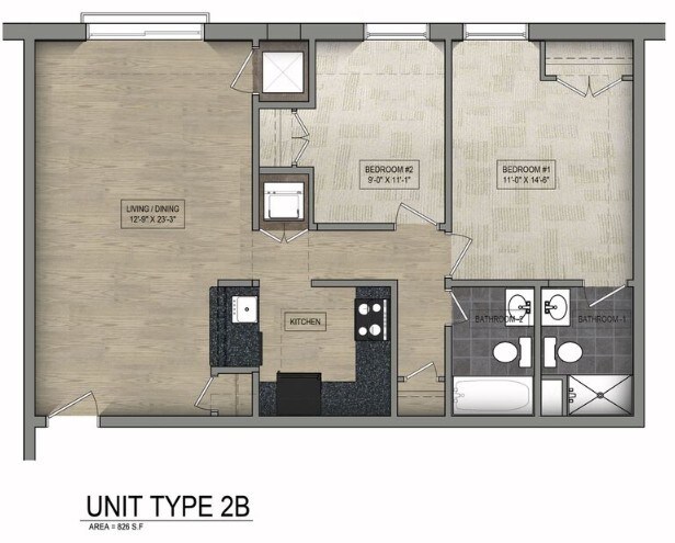 2 Beds, 2 Baths, 826 sq ftModel Gallery