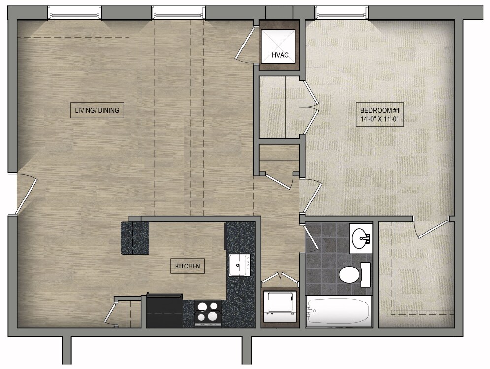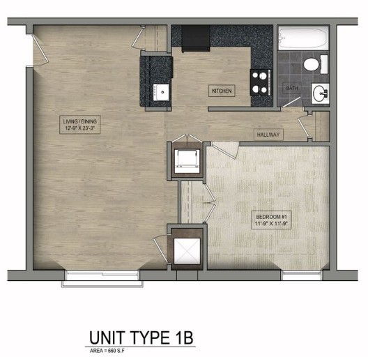 1 Bed, 1 Bath, 660 sq ftModel Gallery