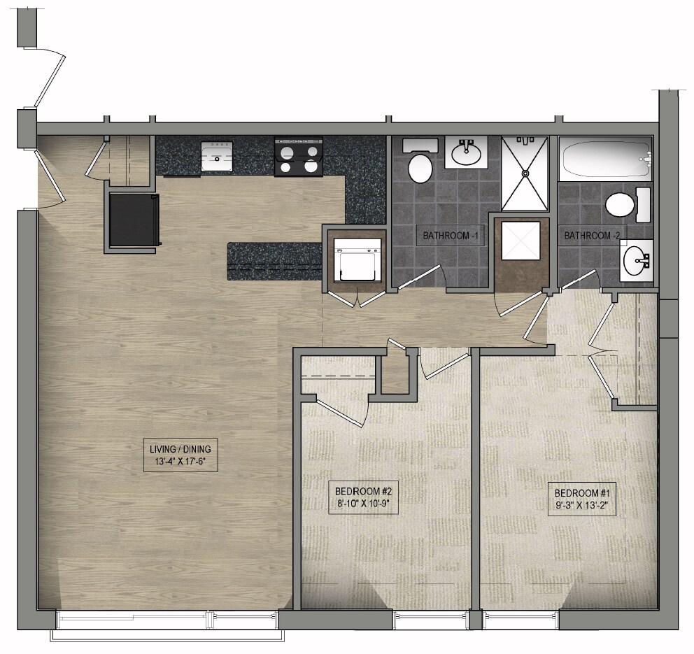 2 Beds, 2 Baths, 800 sq ftModel Gallery