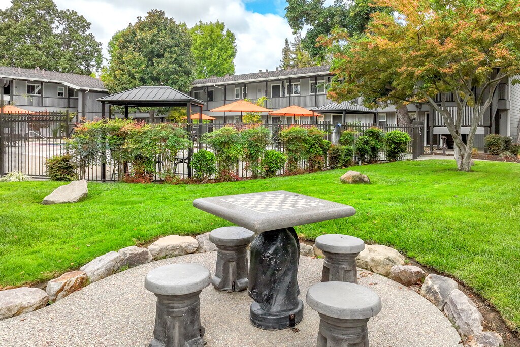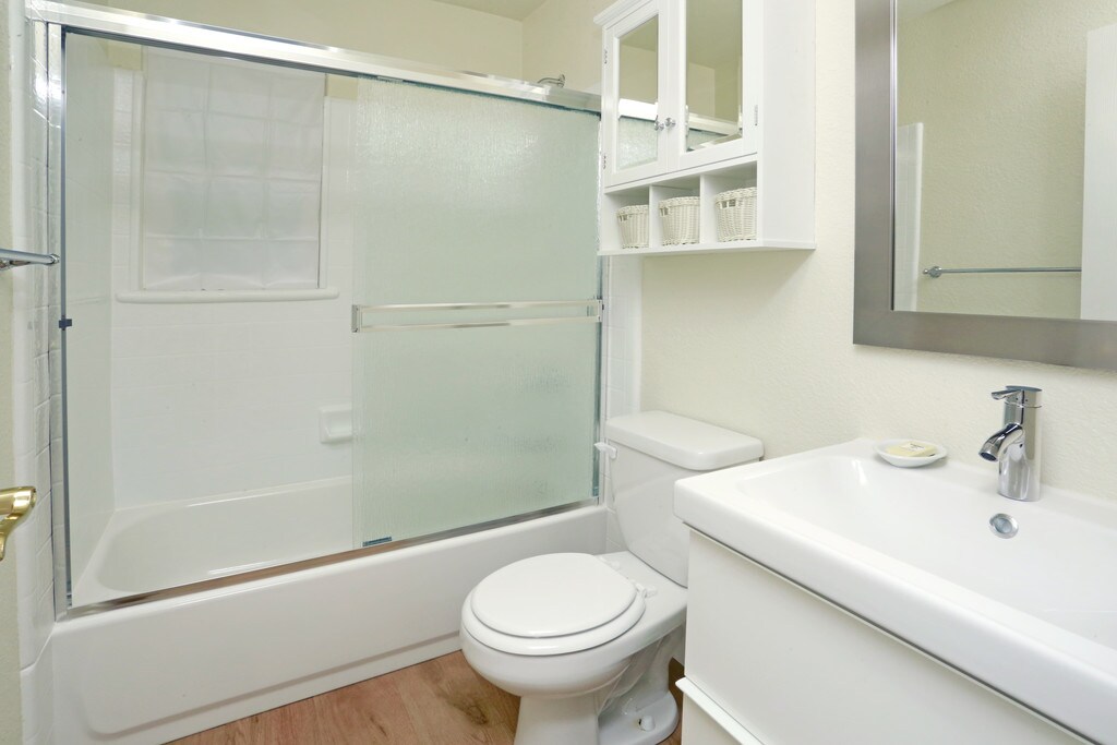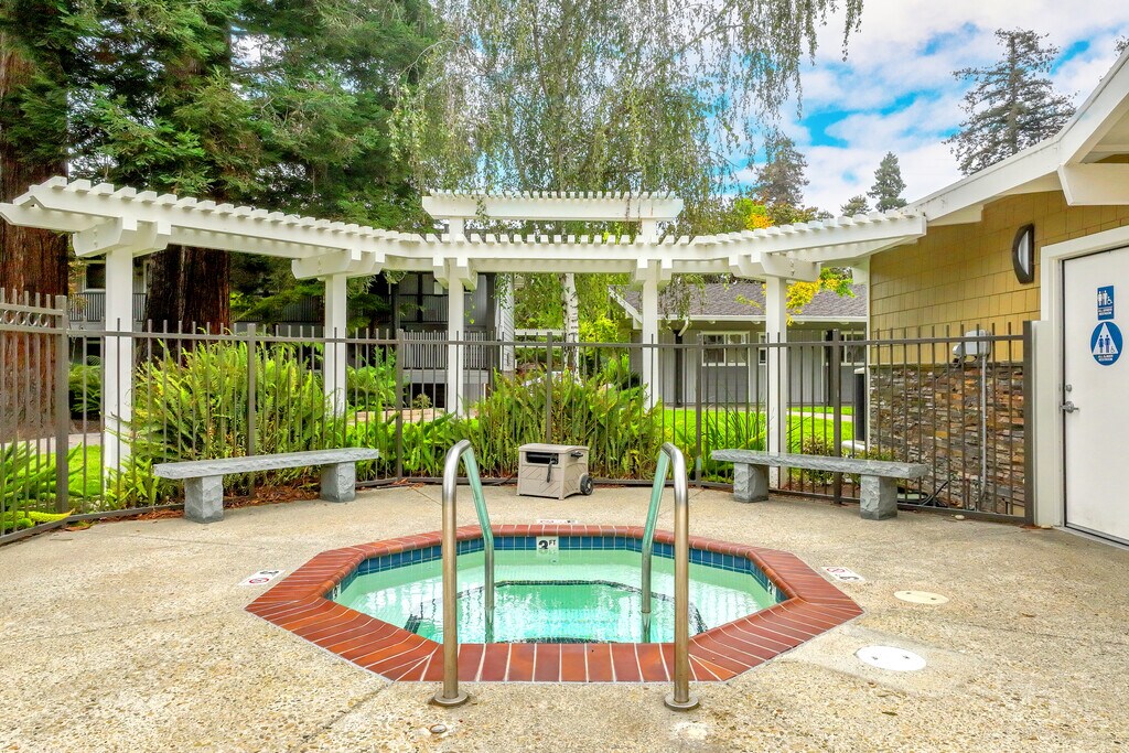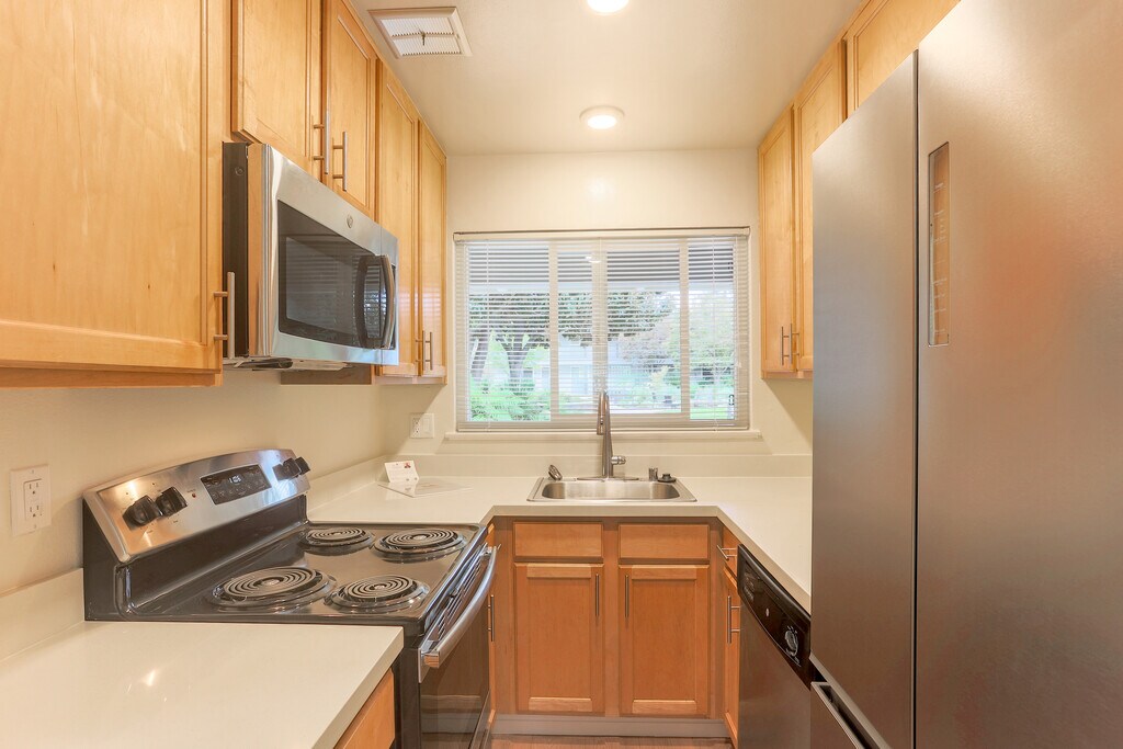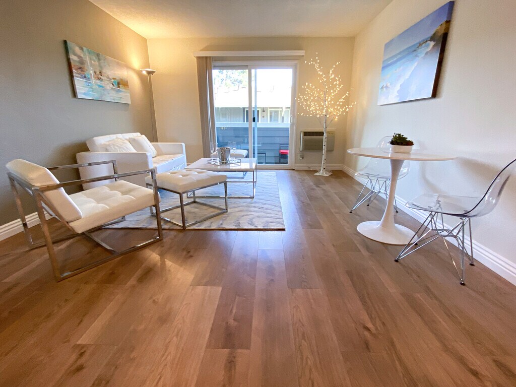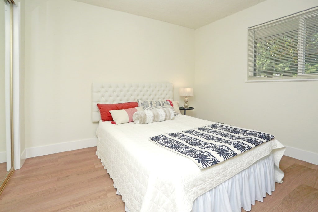 The Parkwood Apartments in Sunnyvale, CA offer quality apartment living in a peaceful, quiet setting. Our newly-updated apartments are bright and airy, with direct access to a private patio or balcony. Designed with convenience and comfort in mind, they include stainless steel appliances (including dishwasher), built-in microwave, European-style solid wood cabinets, quartz countertops, stainless steel appliances, contemporary wood flooring, and custom decorator blinds. Resort-caliber amenities include a state-of-the-art fitness center, sparkling pool with lounge area, and Whirlpool spa. A spacious courtyard and well-groomed, lush lawns, seating areas and landscaping create a peaceful, relaxing environment. So workout on the latest gym equipment or exercise outdoors on the spin cycle patio, then cool off in the inviting waters of the large resort-style pool, play a game of tennis at the neighborhood park and then feel those worked muscles melt away in the Whirlpool spa, or simply lounge on your patio or balcony and enjoy the view. View our photos of apartments in Sunnyvale to get a feel for the community.