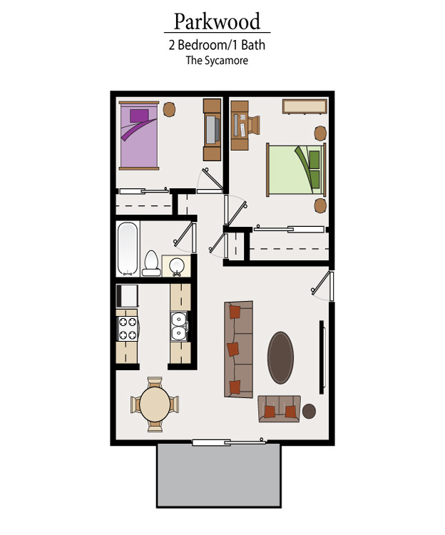2 Beds, 1 Bath, 810 sq ftAvailable NowModel Gallery