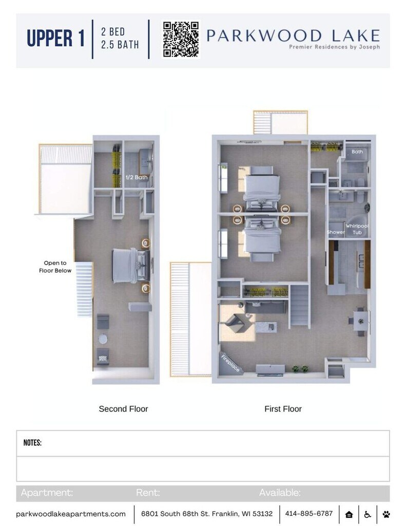 Parkwood Lake in is located on 15 acres of scenic green space and landscaped grounds. A nature walking trail meanders through the property and leads to a private lake with pier, gazebo, and picnic tables. Enjoy a a relaxing sunset or sunrise over the lake when you call Parkwood Lake home! 2 Bed / 2 Bath Lower 1,300 sqft is a first-floor location with patio. The primary bedroom measures 18x12 feet with large walk-through closet and attached full bath. 2 Bed / 2 Bath Lower 1,400 sqft is a first-floor location with patio. The primary bedroom measures 16x14 feet with large walk-through closet and attached full bath. 2 Bed / 2.5 Bath Upper 2,100 sqft is a second-floor location with balcony. The primary bedroom measures 22x12 feet with large walk-through closet and attached full bath. The upstairs loft is spacious with cathedral ceilings, a half bathroom, walk-in closet, and second balcony. 2 Bed / 2.5 Bath Upper 2,200 sqft is a second-floor location with balcony. The primary bedroom measures 16x14 feet with large walk-through closet and attached full bath. The upstairs loft is spacious with cathedral ceilings, a half bathroom, walk-in closet, and second balcony.