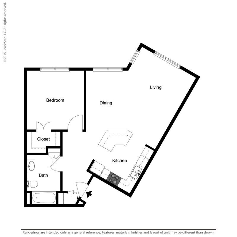 Studio, 1 Bath, 641 sq ftModel Gallery