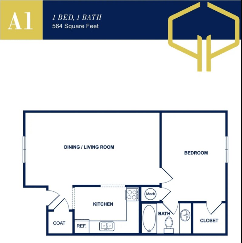 1 Bed, 1 Bath, 564 sq ftAvailable NowCheapest 1 BedroomThis is the cheapest 1 Bedroom at this PropertyModel Gallery